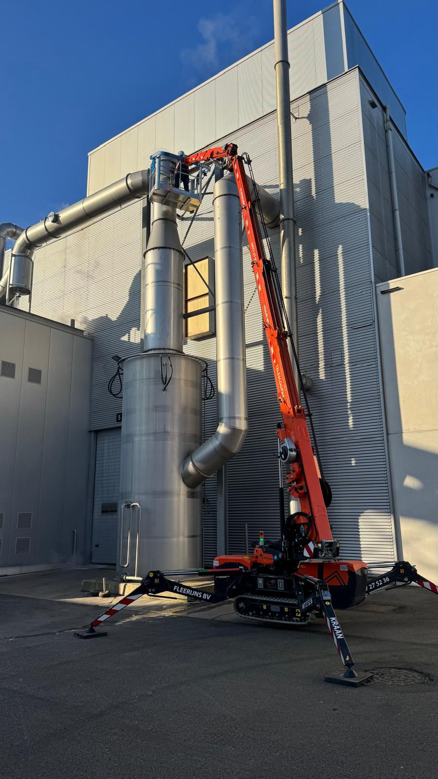 Onze telescoopkraan heeft weinig ruimte nodig, zo komen we op alle moeilijk bereikbare plaatsen.